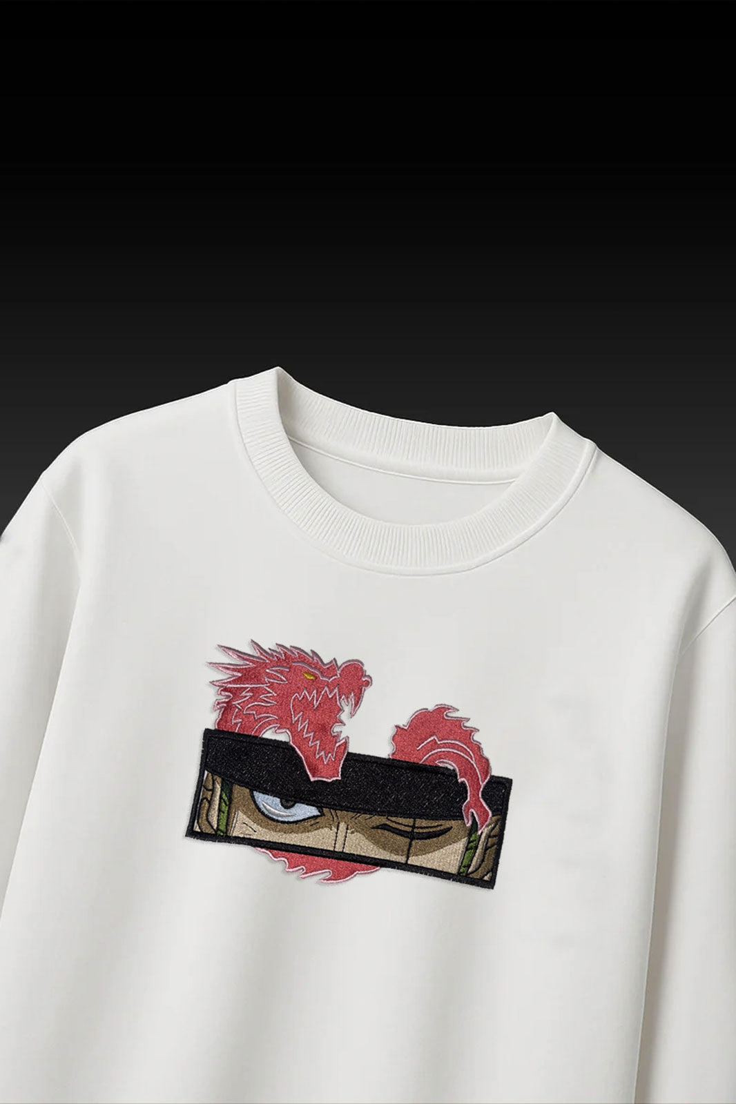 This t-shirt features a bold embroidered graphic of a piercing pair of eyes framed within a rectangular patch, accompanied by a striking red dragon emerging above and below. The design blends fierce mythical energy with a modern streetwear aesthetic, set against a crisp white background for maximum visual impact. Made from soft, high-quality fabric, this shirt is perfect for fans of anime-inspired fashion or those seeking standout apparel with a touch of legend and edge.